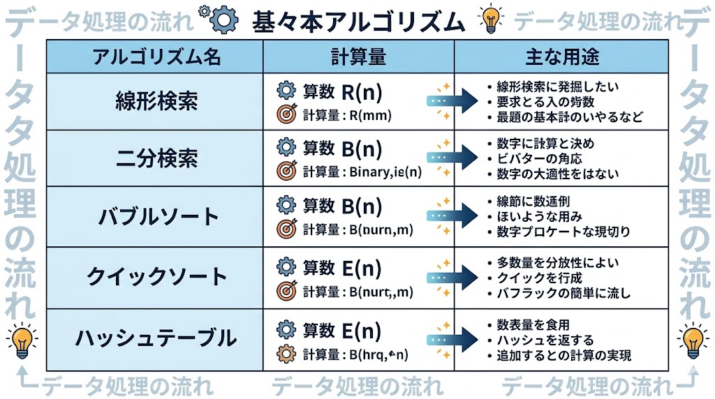 📌 要点:線形探索・二分探索・バブルソート・クイックソート・ハッシュテーブルの5つには、ほぼすべてのアルゴリズムに通底する「設計の型」が含まれている。