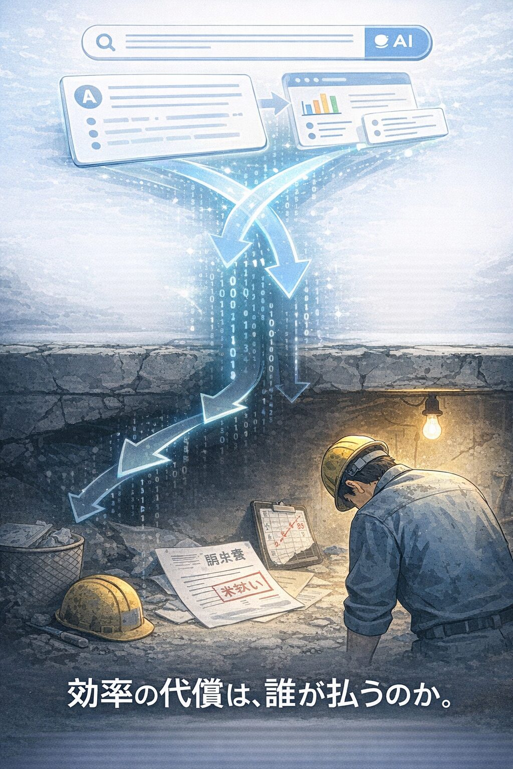 Google AIモードが普及すれば、「万博 マルタ館 提訴」と検索した際に、AIがニュース各社の記事を読み込み、「工事費未払いで下請けが提訴した」と瞬時に要約してくれます。しかし、その要約からは、代表の男性が吐露した「食事や睡眠もままならない過酷な環境」という、文字の裏側にある「痛み」や「湿度」は、情報の効率化という名の下に削ぎ落とされてしまうかもしれません。