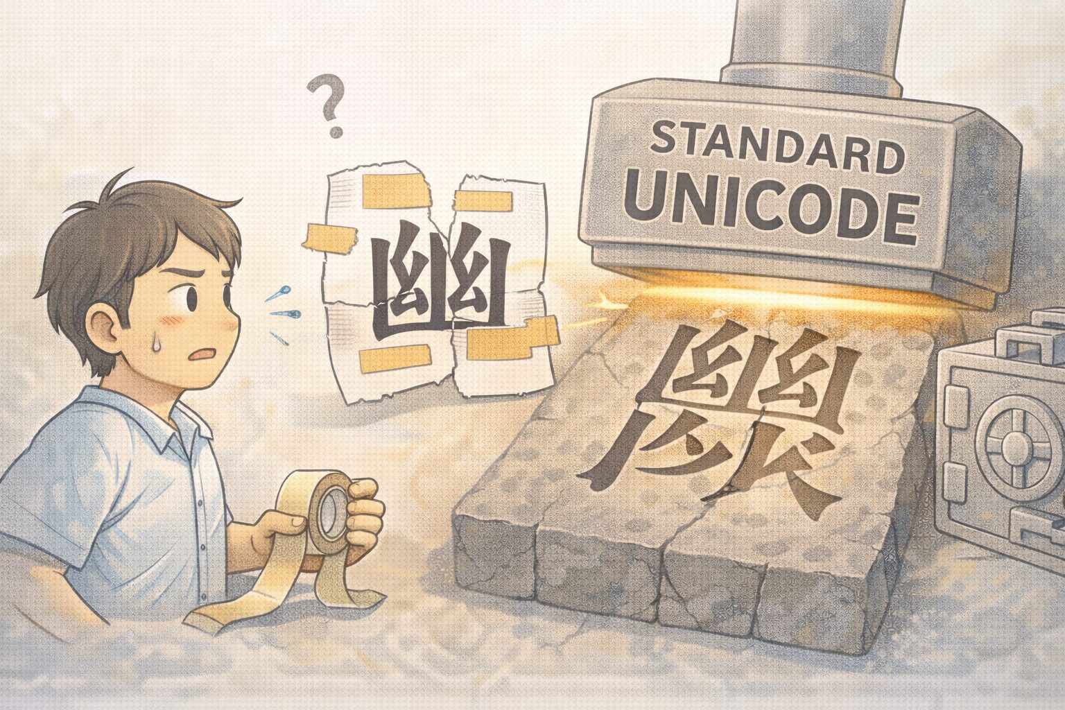 ゆるコンピュータ科学ラジオでそう断言される通り、実はコンピュータの世界には、この世のどこにも実在しない「謎の漢字」がいくつも登録されています。なぜ、実在しない文字が世界共通の厳格な規格に紛れ込んでしまったのか。そして、間違いだと判明してもなお、なぜ消されることなく鎮座し続けているのか。