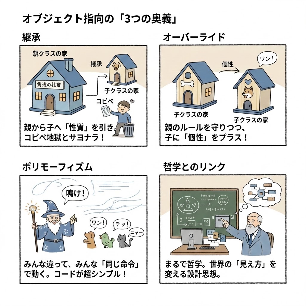 まとめ:継承・オーバーライド・ポリモーフィズム:オブジェクト指向の奥義