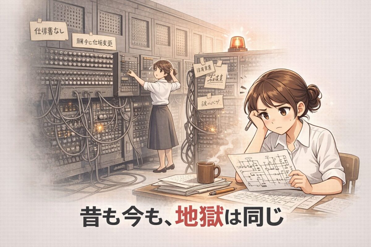 80年前も今も、「システムを理解していない人間の良かれと思っての介入(あるいは承認欲求)」は、現場のエンジニアにとって最大のバグ要因となる。この絶望的な共通点は、私たちがどんなにDXを推進しても逃れられない「人間社会のバグ」なのかもしれません。