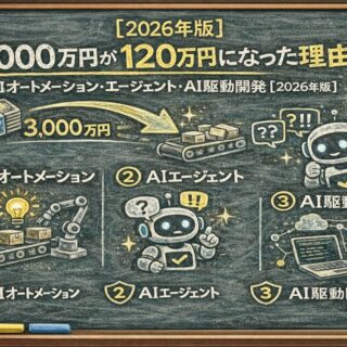 AI・ツール活用 3,000万円の外注見積もりが120万円になった理由|AIオートメーション・エージェント・AI駆動開発【2026年実践ガイド】 AIオートメーション・AIエージェント・AI駆動開発の3トレンド実践目線で解説。香川県自治体の3,000万→120万事例など、現場で使える具体策を紹介。 2025.12.13 AI・ツール活用